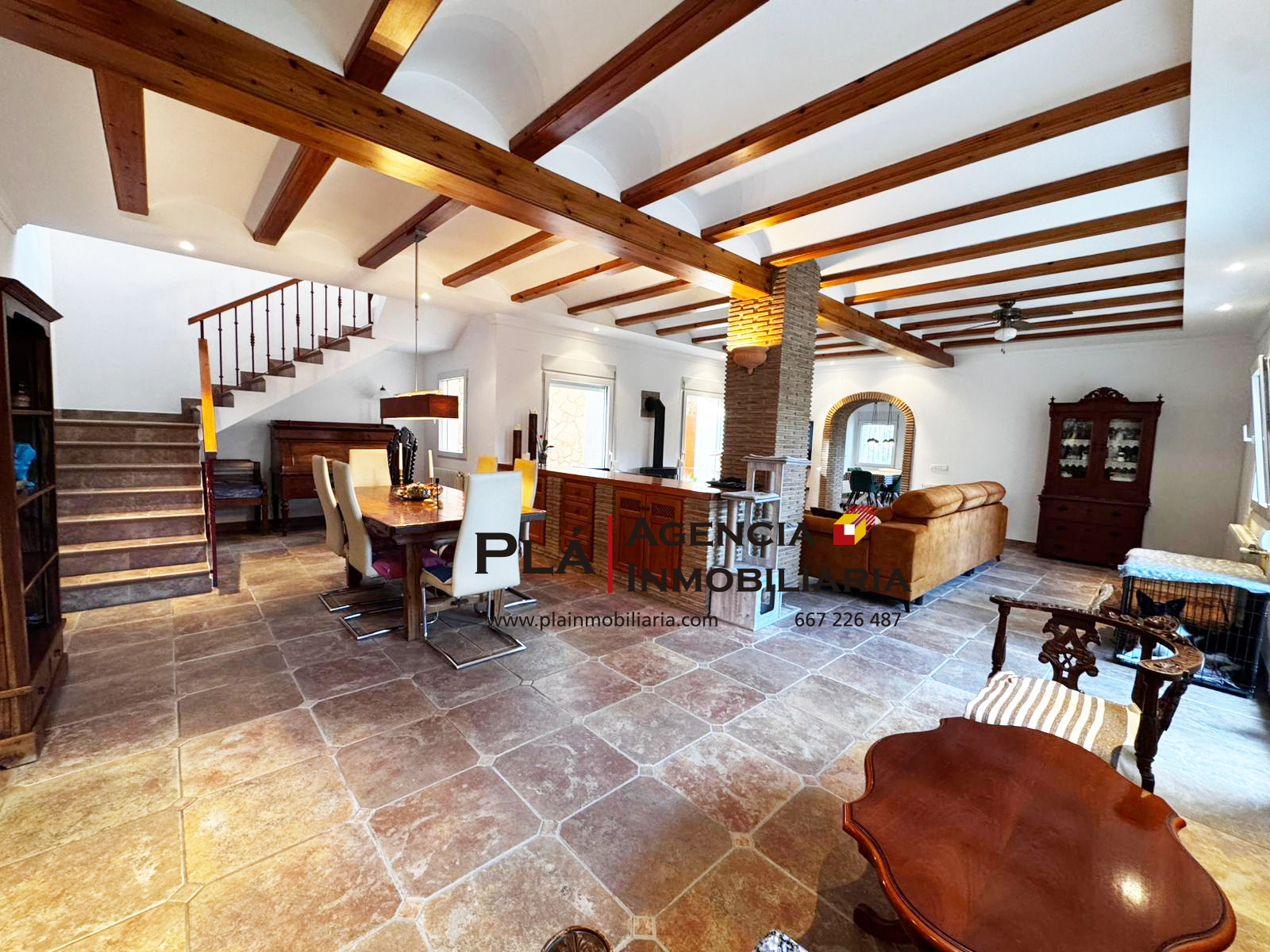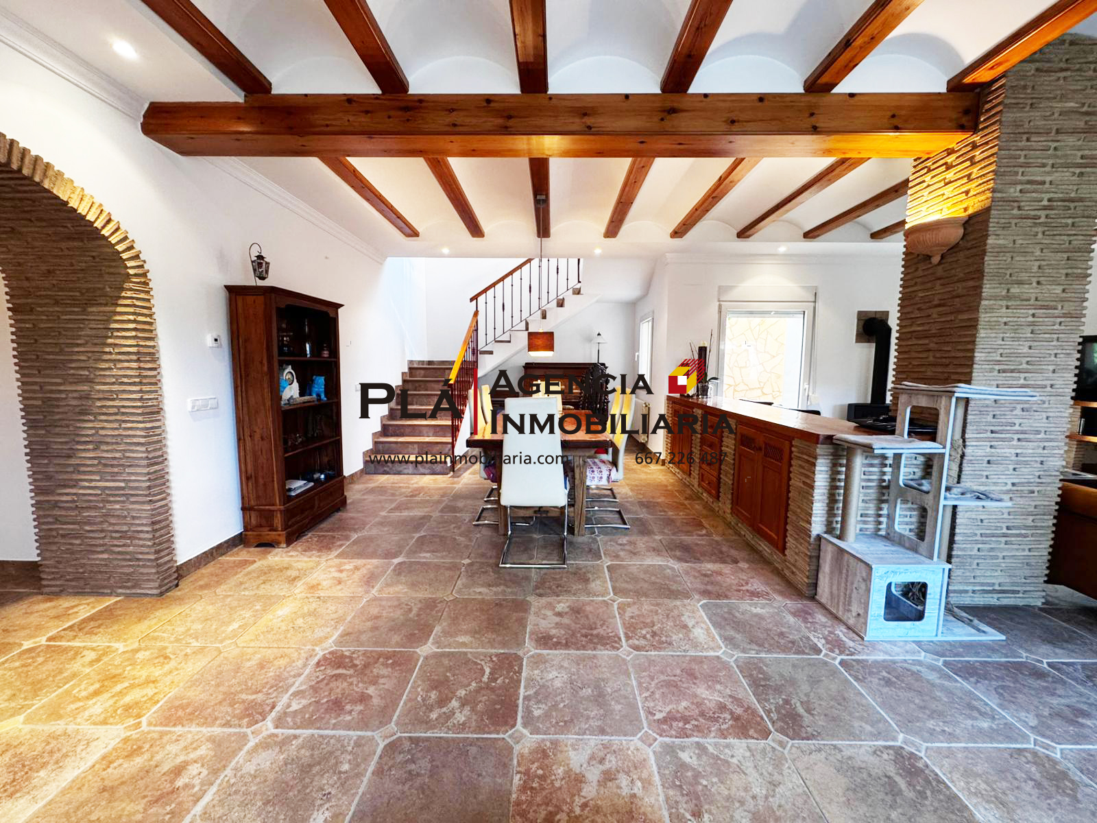 En venta ``La Finca del Lechero´´ un preciado rústico-histórico sito en la ciudad de Denia de los años 50. 75 años de historia y una colección de remodelados, hasta la actualidad. Construida con varias ampliaciones hechas desde entonces hasta hoy día, ofrecemos una casa de altas prestaciones, pensada para recibir invitados y familiares y, que se sientan muy a gusto, teniendo éstos últimos su espacio privado pero compartiendo a su vez, un mismo hogar. Imaginemos entrar por un gran camino estrecho, recorrerlo hasta el fondo y, encontrarnos la entrada a la parcela, desconocimiento total hasta entrar al terreno, y encontrarnos una gran casa, donde los huéspedes pueden aparcar perfectamente hasta 6 coches, sin contar la existencia de un garaje doble para el propietario. Fuera de la vivienda, tenemos un pasillo natural cubierto por el que podemos descubrir a lo largo del mismo la fachada con sus dos alturas a mano izquierda, así como todo el jardín a mano derecha, una combinación de árboles frutales tropicales y pinos que nos regalan una sombrilla natural, con un microclima fresco sobre todo para verano. Se trata de una gran extensión llana de terreno de unos 2.000m2 y al inicio del mismo, encontramos también un gran estanque con peces. Cabe no olvidar que los actuales propietarios tuvieron caballo durante muchos años, en la actualidad, existe una caseta alta y lo suficientemente grande para hospedar un caballo, la caseta tiene bebedero y varias garras para amarrar al caballo. Además, todo el jardín sirve perfectamente para cabalgar con el caballo o hacer saltos con él. Aprovechando que hablamos de esto, la vía verde de Denia, antiguo vial que conectaba Denia con Valencia, la tenemos a escasos 200m de la casa. Esto nos brinda posibilidades infinitas, desde ir con el caballo más de 10km rectos en dirección Verger, Poblets, hasta aprovecharlo para hacer una caminata o deporte. La misma, nos conecta directamente con el centro de Denia (1Km ó 10min a pie). Los supermercados se encuentran a 1Km de la casa (Lidl y Consum) y el mar y sus playas a 1,5Km. La ubicación de la casa es simplemente EXCELENTE. Volviendo al pasillo cubierto, la entrada principal a la vivienda se encuentra al inicio del mismo, la cual da a un distribuidor amplio y desde donde podemos decidir si ir hacia el salón comedor principal o torcer a mano izquierda para dirigirnos a la zona de invitados. La vivienda principal: consta como hemos dicho de amplio salón comedor con chimenea de leña. Desde el mismo, podemos seguir hacia la cocina semi- independiente, dividida por un arco de ladrillos del salón. Ésta tiene una original salida a terraza para comer en la sombra. Junto a cocina encontramos lavadero y patio. Subimos escaleras a primera planta para encontrar 3 dormitorios dobles con uno de ellos con ducha en suite y salida desde el dormitorio a terraza abierta. Existe además un baño independiente con bañera. Invitados; desde el distribuidor torcemos a mano izquierda donde encontramos un aseo de cortesía para todos, y siguiendo hacia el fondo, dividido ya por una puerta de la zona central, encontramos una ducha con aseo ya pensada para la parte de invitados, una sala mediana, ideal para salón de invitados con sofá y televisor, un 1er dormitorio, y el segundo y tercer dormitorio para invitados subiendo la escalera interior desde la salita. Además, existe una segunda ducha con aseo independiente para los dos dormitorios en primera planta de invitados. Desde la salita de invitados podemos salir a una Naya totalmente techada y acristalada, llena de luz y con posibles usos como zona de comedor tanto para los invitados como para fiestas grupales junto al jardín. Las opciones son muchas. La casa ha sido construida con mimo y mucha cabeza. Está bien pensada y tiene a nuestro parecer, muchísimo gusto. Destacamos radiadores en ambas plantas a gas oil, suelos porcelánicos, puertas y vigas de pino y ventanales a pvc doble en toda la casa.