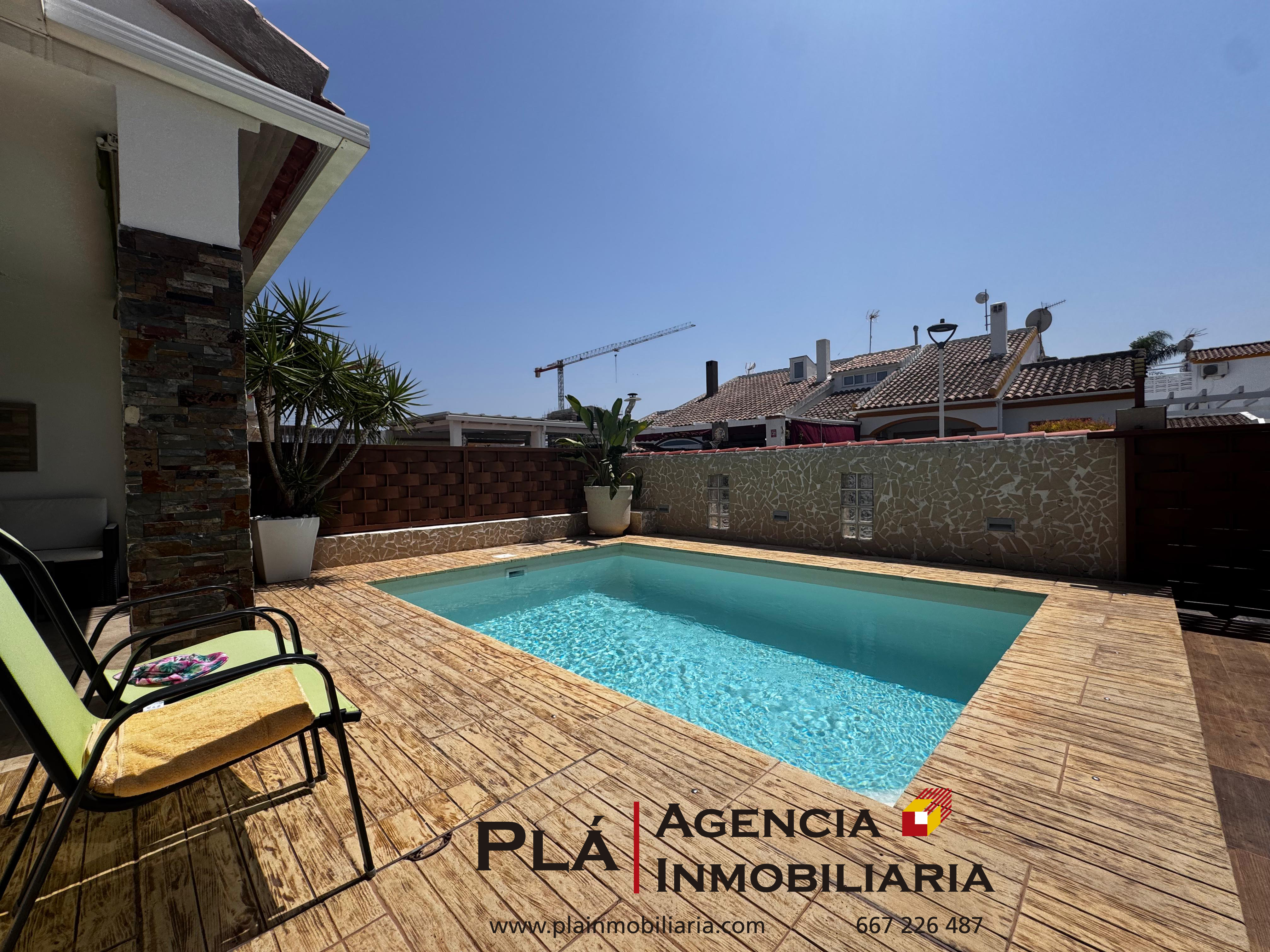 A la venta excelente chalet pareado totalmente reformado y bien actualizado en la zona costera de Verger, a 10Km de Denia, a 400m del mar. Un barrio soleado, alegre y tranquilo. Funcional tanto para casa de vacaciones como para casa de primera residencia tiene lo esencial: piscina privada y ducha exterior dentro de la misma parcela, parking cubierto dentro de parcela para hasta dos vehículos, barbacoa trasera con excelente terraza, terraza frontal al sur junto a piscina construida en el año 2012. La vivienda tiene dos plantas totalmente separadas la una de la otra; en planta baja tenemos salón-comedor junto a la cocina abierta, dos dormitorios dobles con armario empotrado y una ducha independiente. A través de la cocina salimos al patio trasero, junto a barbacoa, allí encontramos una escalera independiente exterior que nos lleva a la primera planta donde encontramos una gran terraza abierta y un dormitorio triple con una ducha en suite. Recomendamos encarecidamente la visita, el sitio y el producto lo merecen para el que busca los básicos de un chalet listo para entrar a vivir junto al mar y no tener que meterse en obras. Se vende semi amueblado, IBI alrededor de 450€/año. No tiene comunidad. Fibra óptica incluida, así como conexión de red general de alcantarillado y alumbrado público.